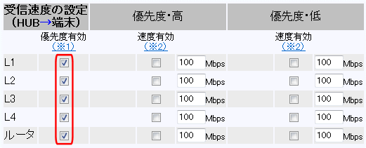 優先度有効ポート:L1〜L4、ルータ全てチェックあり