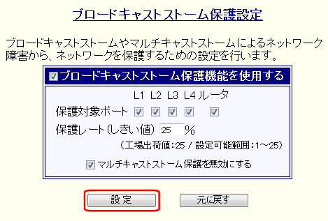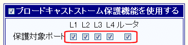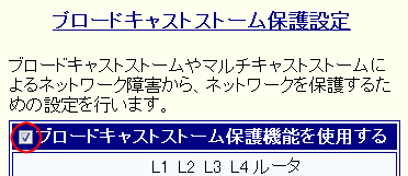 - [ブロードキャストストーム保護機能を使用する]にチェックを入れて下さい。