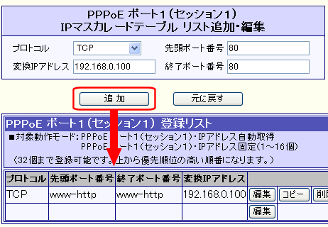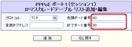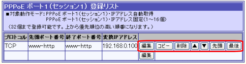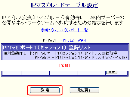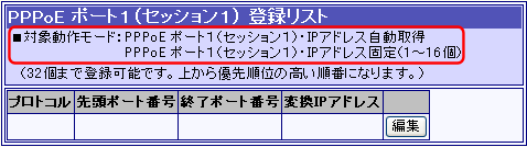 PPPoE ポート1(セッション1) IPアドレス固定(1〜16個) [NAT/IPマスカレード変換有効]