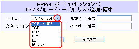 IPマスカレードテーブル設定を行なう場合、あらかじめ契約しているISPへ確認して下さい。