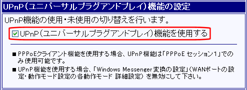 ※ 工場出荷値は「UPnP(ユニバーサルプラグアンドプレイ)機能を使用する」にチェックが入っています。