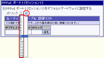 PPPoEポートにルーティングテーブルを設定する