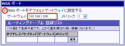WANポートをデフォルトゲートウェイに設定する