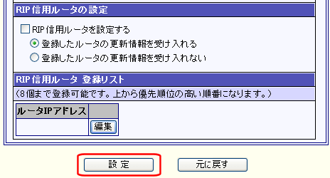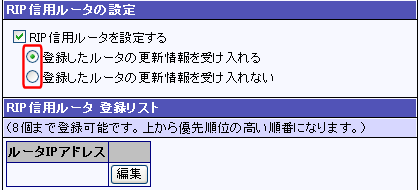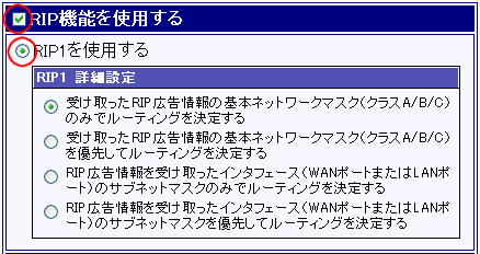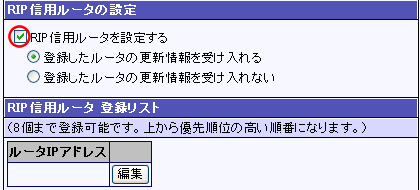 1. [RIP信用ルータを設定する]にチェックを入れて下さい。