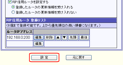 4. RIP信用ルータの設定を行う場合は RIP1/RIP2共通設定 へ進んで下さい。