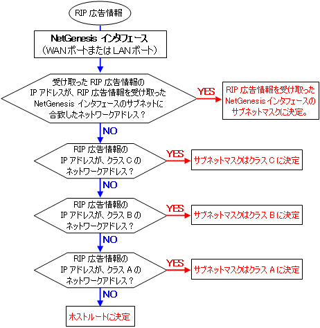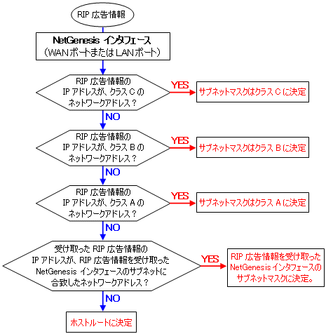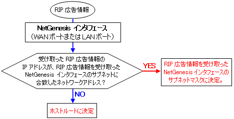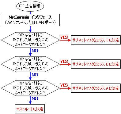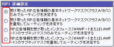RIP広告情報を受け取ったインタフェース(WANポートまたはLANポート)のサブネットマスクのみでルーティングを決定する