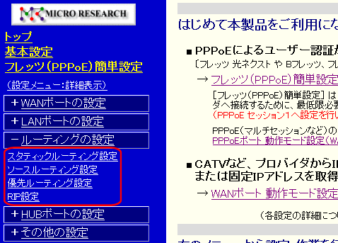 ソースルーティング設定 スタティックルーティング設定