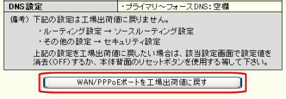 「フレッツ(PPPoE)簡単設定」を行うと、「フレッツ(PPPoE)簡単設定」で設定した内容以外、全ての設定が工場出荷値に戻ります。