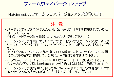 NetGenesisのファームウェアバージョンアップ(※)について説明します。