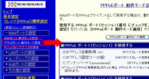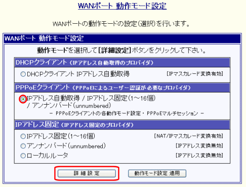 PPPoEポートの「動作モード設定」について説明します。