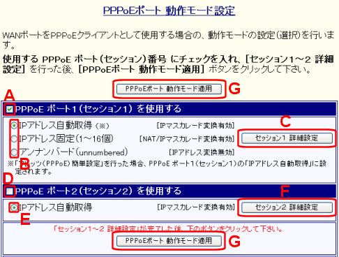 G. PPPoEポート 動作モード適用