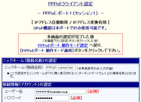 (以降、PPPoE セッション1の設定を行う場合の例です。)