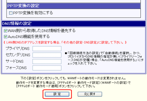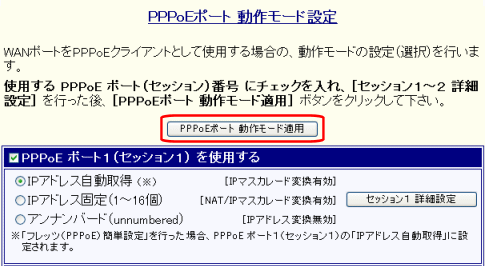 [PPPoEポート 動作モード適用]ボタンをクリックします。