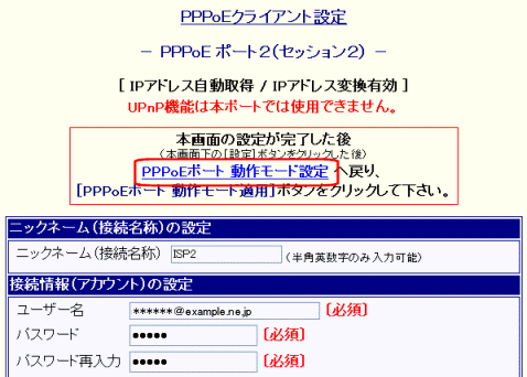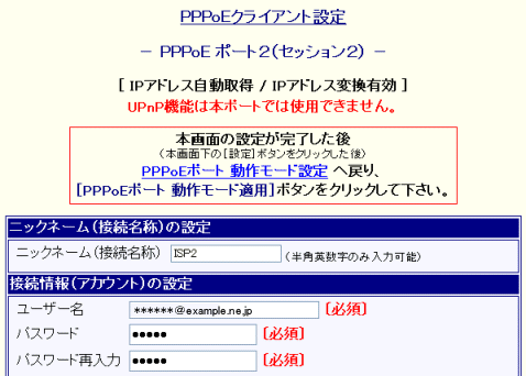 PPPoE ポート2(セッション2) の詳細設定を行います。)