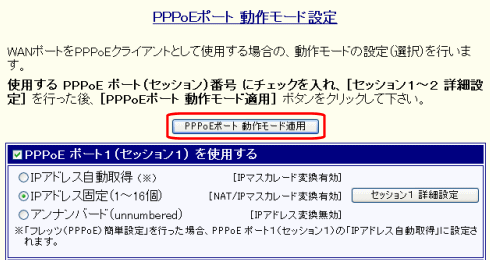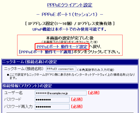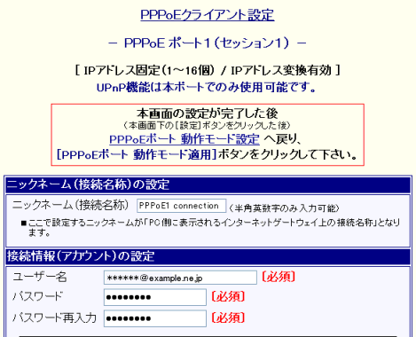 PPPoE ポート1(セッション1)のニックネームの設定について説明します。 |