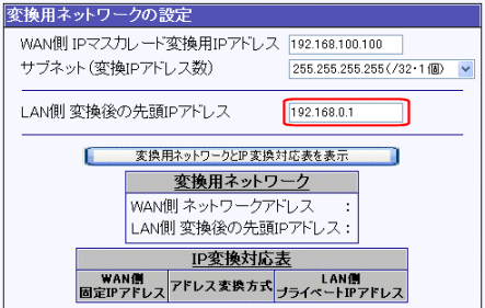 IPアドレス変換の設定(変換用ネットワークの設定)