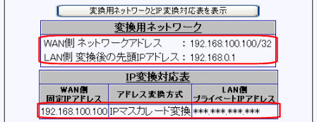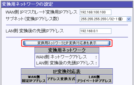 3. [変換用ネットワークとIP変換対応表を表示]ボタンをクリック(※)して下さい。