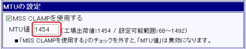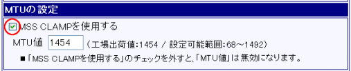 「MSS CLAMPを使用する」のチェックを外すと、次項の「MTU値」の設定が無効になります。