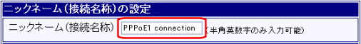 ここで設定するニックネームは、「PPPoEポート情報・制御」画面の "ニックネーム(接続情報)" 欄に表示されます。